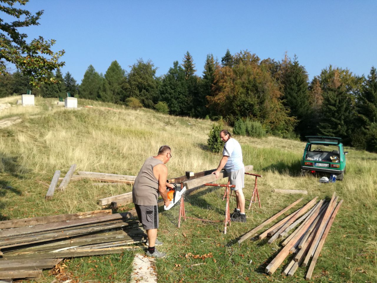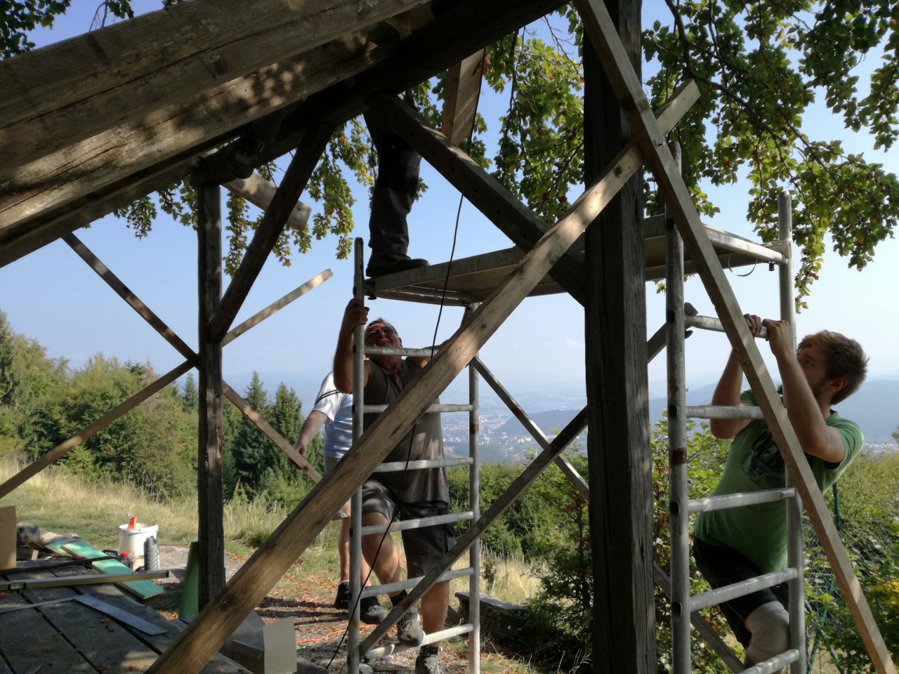 Dňa 25.3.2017 zorganizoval klub turistov Horné Pršany a obec Horné Pršany brigádu na oprave a stavbe prístreška a rozhľadne na Kopaniciach/Lažteku.